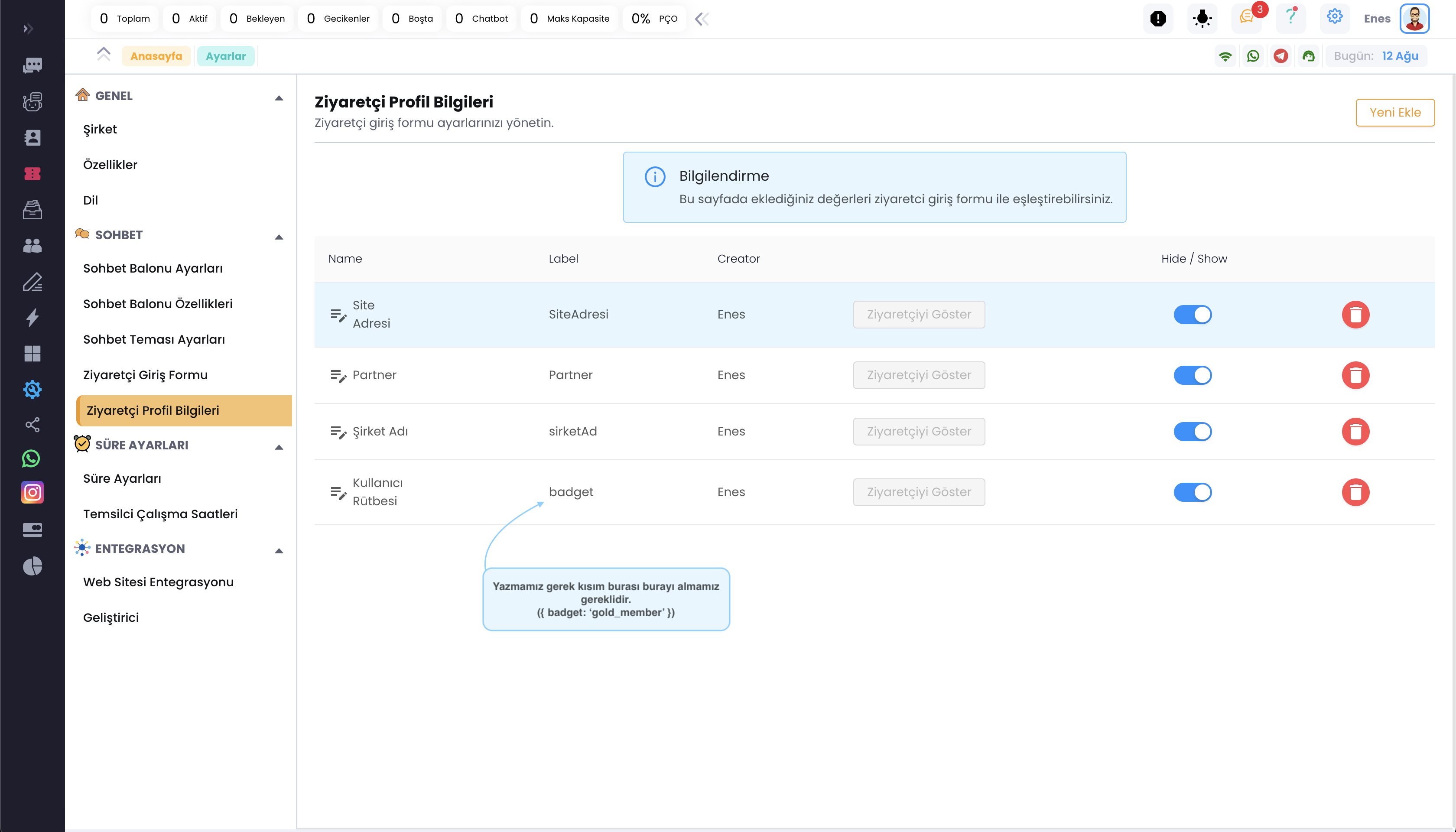 - Örnek olarak müşterilerinizden birisi canlı desteğe bağlandı ve onun hakkında daha detaylı bilgi almak istiyorsunuz işte Bu özellik sizin işinize yarayabilir.